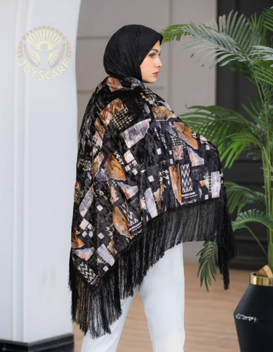 روسری مخمل-مجلسی-ریشه هندی-جوی اسکارف